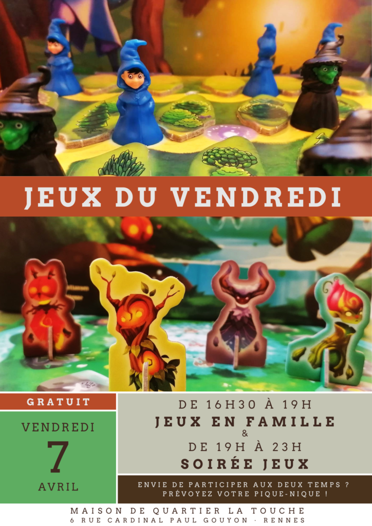 Tous Jeux du vendredi Le vendredi 7 avril de 16h30 à 19h jeux en famille. Et De 19h à…stecy16 mars 2023