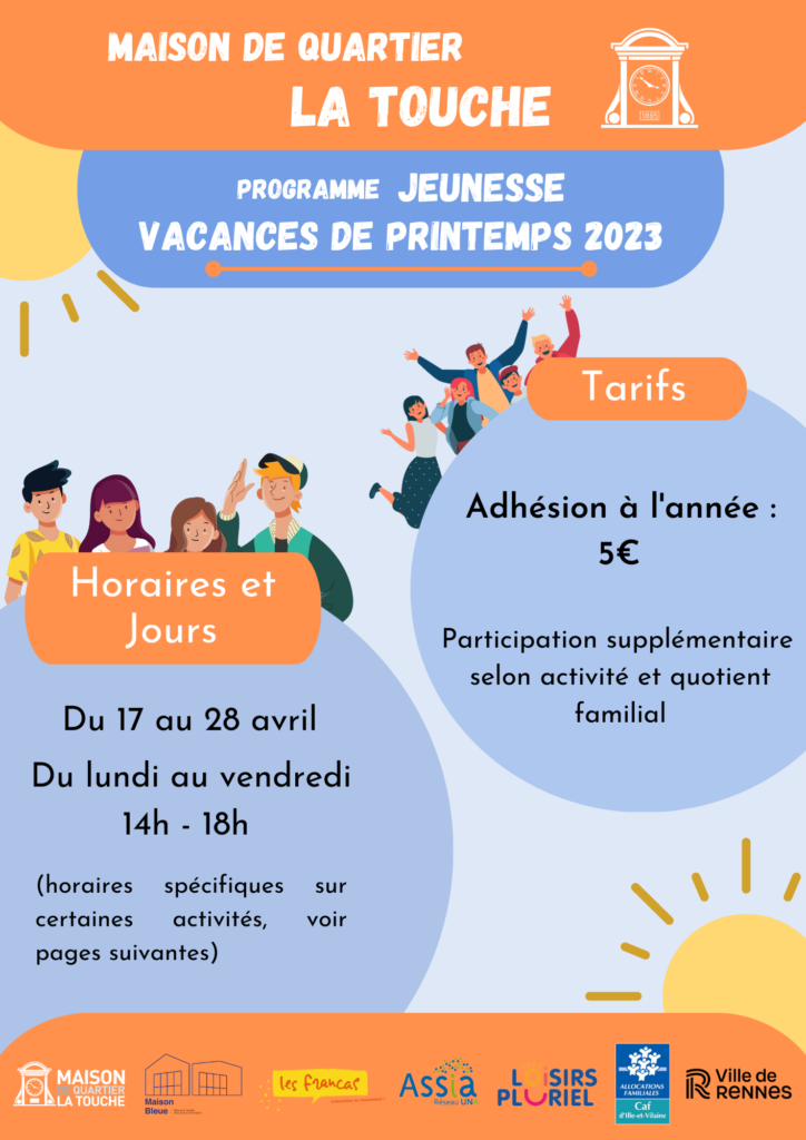Tous Programmation Jeunesse – Vacances d’avril Découvrez la programmation du secteur jeunesse, sur les vacances d'avril, en cliquant sur le bouton…stecy23 mars 2023